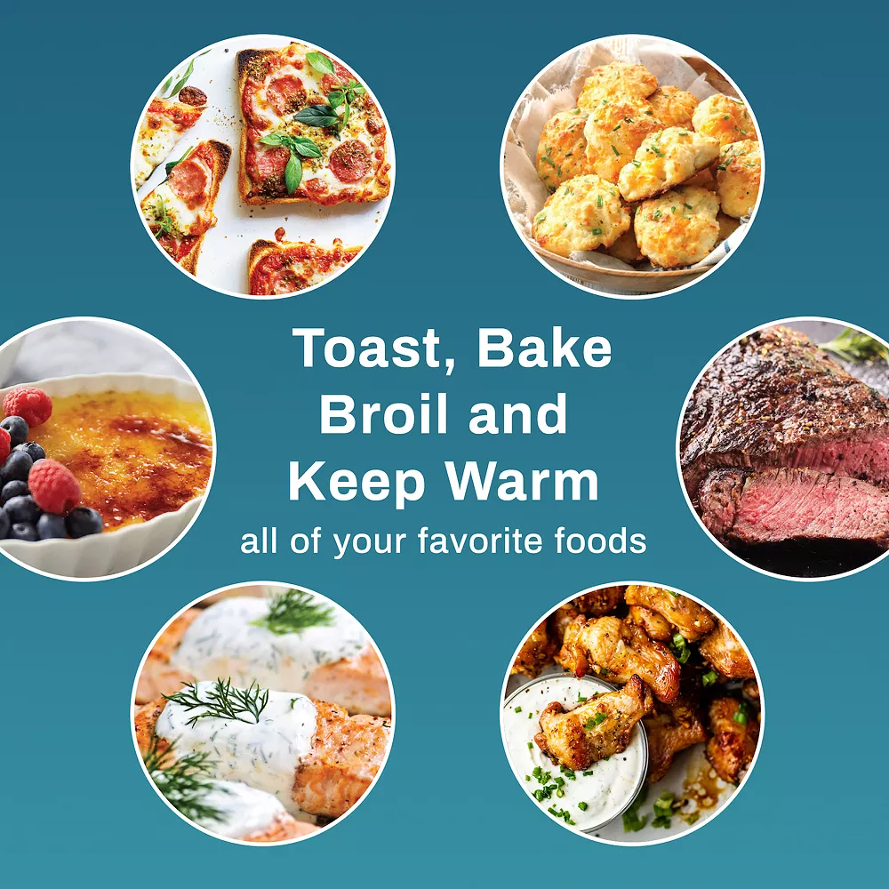- 1300 watts of power with specially-designed glass tubing heating rods, the built-in temperature thermostat maintains even cooking heat to keep food warm, bake or toast.