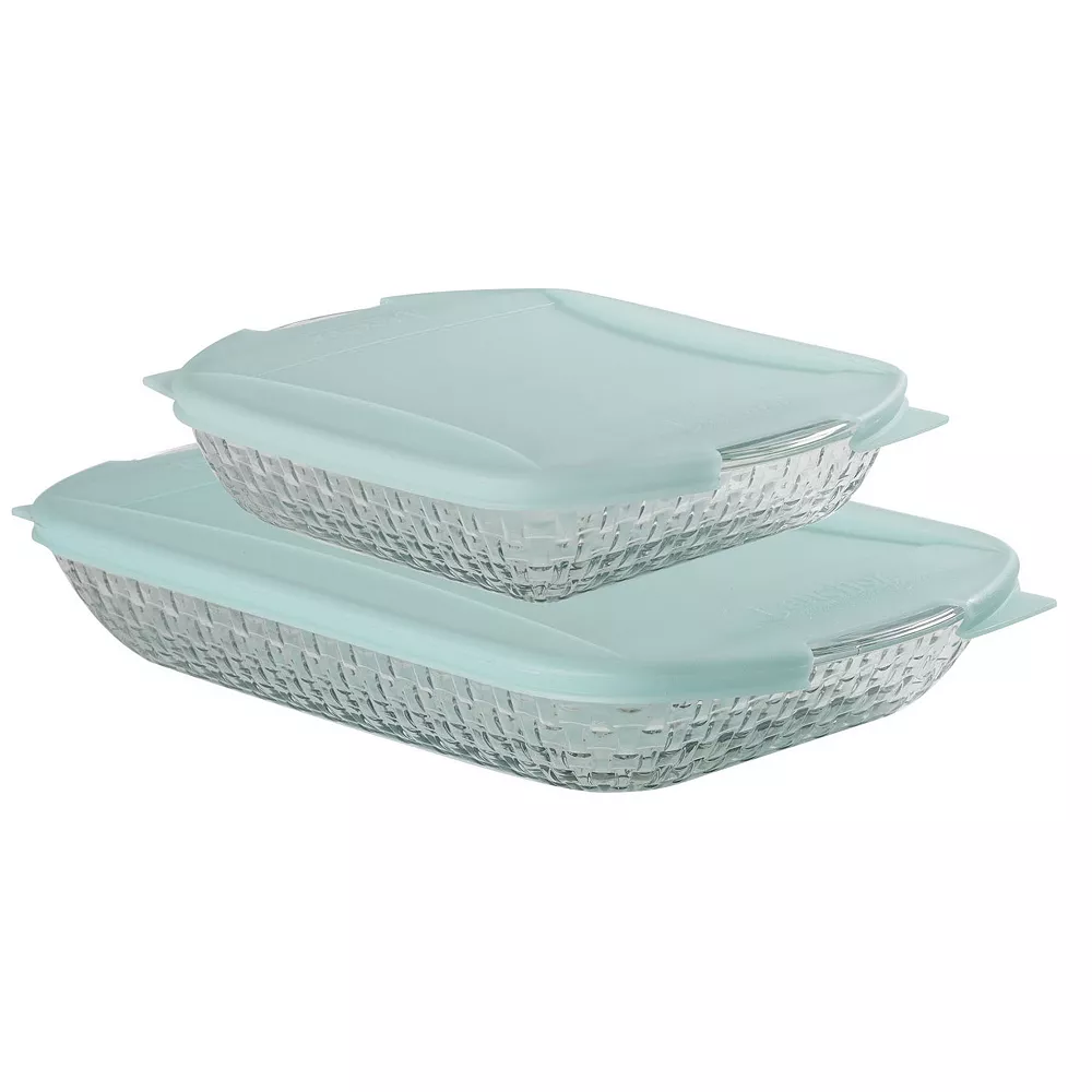 Bake and take desserts and more in these sturdy glass Anchor Hocking dishes.