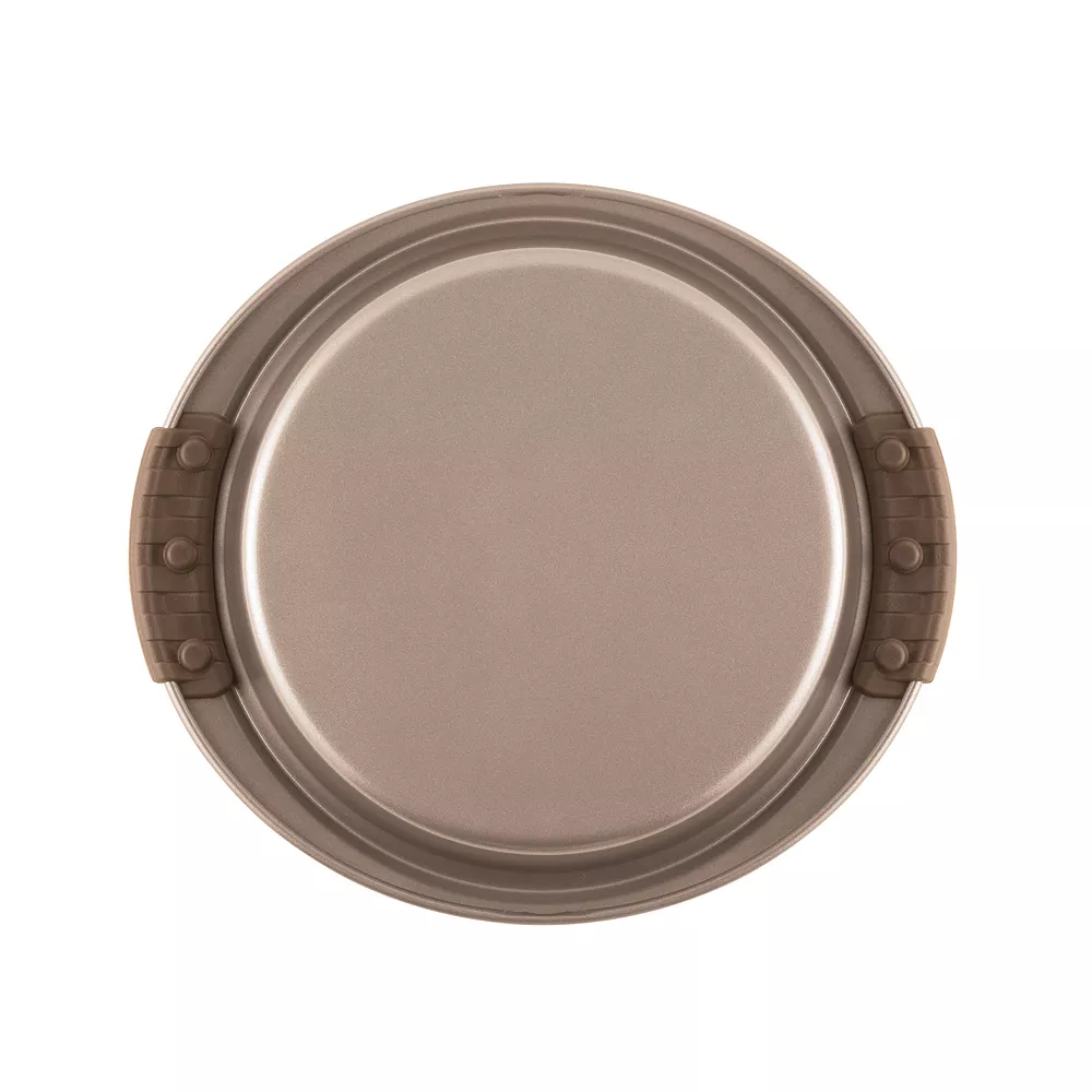 In a popular baking pan shape, the Anolon Advanced Bronze 9″ round cake pan is designed to make baking easier and more efficient.