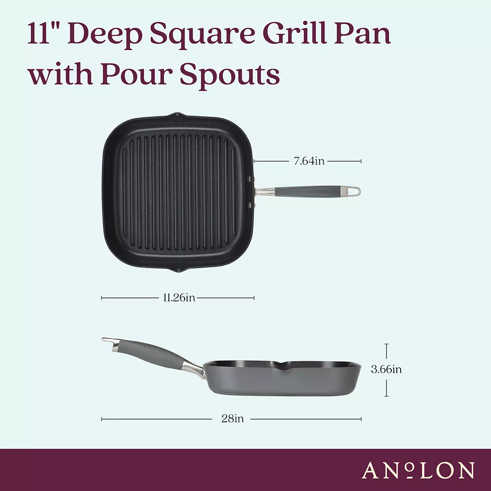 Bring the grill inside with the high-quality performance, durable construction, and everyday convenience of the Anolon Advanced Home Hard-Anodized Nonstick Deep Square Grill Pan.