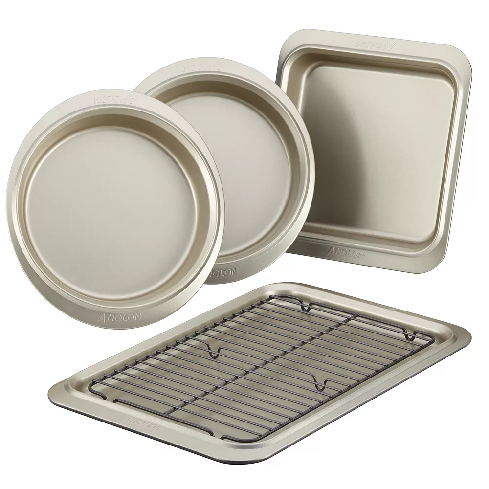 Whip up simple and classic baked goods or let the creative baker inside you roam free, with the stylish, high-performance Anolon Allure nonstick bakeware set.