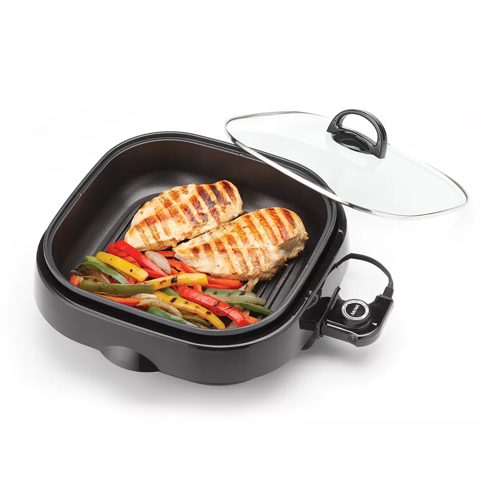 - Extra-large 14-in.grill; deep, large capacity 4-quart pot