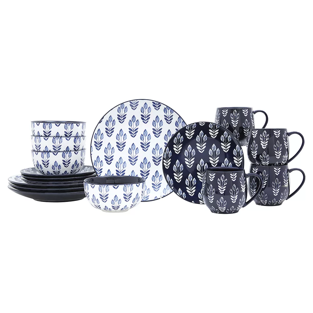 - Four 11-in. dinner plates, four 8.5-in. salad plates, four 6-in. bowls & four 22.5-oz. mugs