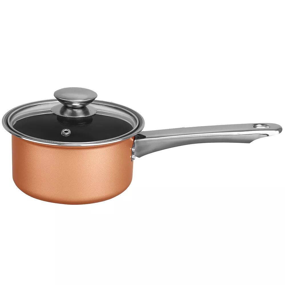 The Brentwood 9 Piece Cookware sets comes with all your cooking necessities. This set is complete with a 9.5inch fry pan, one 1quart saucepan with lid, two 2.6 quart casserole pots with lids, and one 3.2 quart casserole with lid. Each piece is finished with a nonstick coating that makes it easy to cook without the mess and makes for a quick and easy wash with no excessive scrubbing! Comfortable ergonomic handles and a lightweight aluminum construction. This beautiful copper cookware set adds a modern aesthetic to your kitchen. Dishwasher Safe for effortless cleanup.