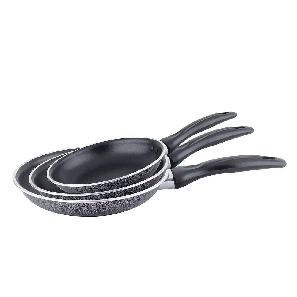 The Brentwood 7, 9 and 11 inch aluminum non-stick induction frying pan set is perfect for cooks of all skill levels. Pan fry and saute all kinds of meats and veggies. Each pan features a strong riveted, cool touch handle, granite textured exterior, and easy to clean non-stick surface. Entirely dishwasher safe.
