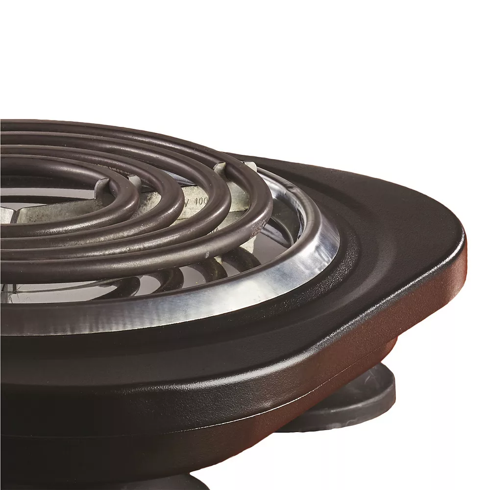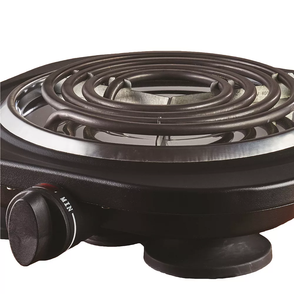 Use the powerful 1000 watt Brentwood TS-321BK Single Electric Burner for all your cooking needs. Adjust the heat from low to high. Electric coil delivers even heating. Convenient indicator light illuminates when powered on. Portable, lightweight design takes up little counter space and easily stores. The hot plate burner is easy to clean surface and drip pan. Non-slip feet keep the unit secure in place.