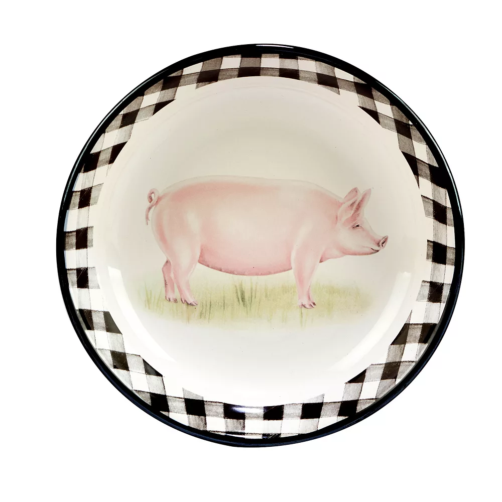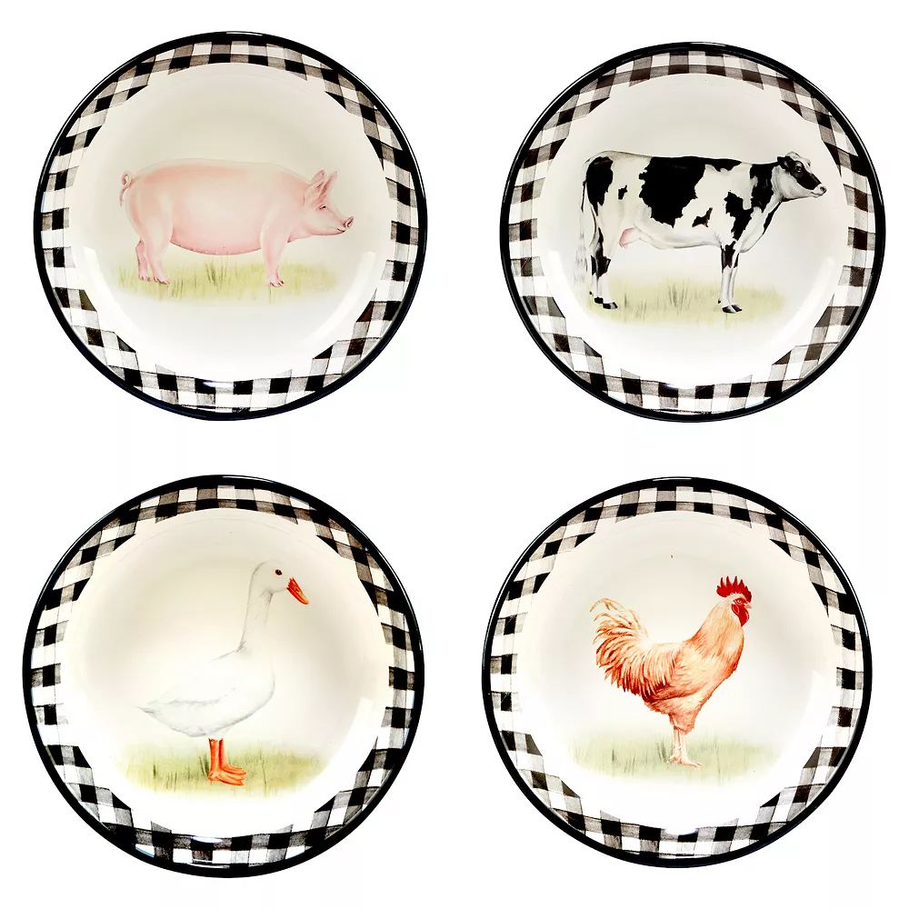Give your rustic dining decor a fresh, new look with this Certified International On The Farm soup bowl set. A black and white checkered pattern and farm animal graphics create a classic farmhouse look.