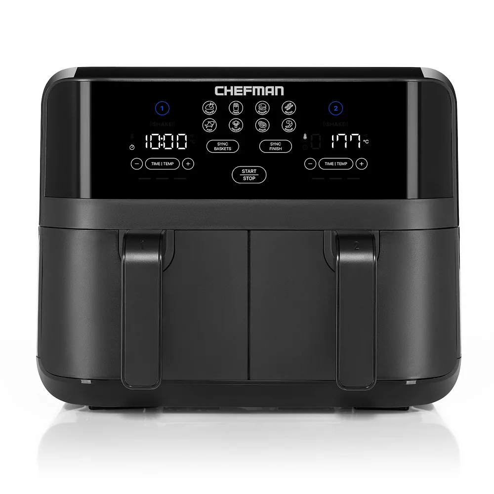 Air frying the healthiest, crispiest, and most flavorful food for the entire family has never been so convenient. The Chefman TurboFry Touch Dual Air Fryer has two spacious, 4.5-quart baskets so you can maximize and master mealtime.