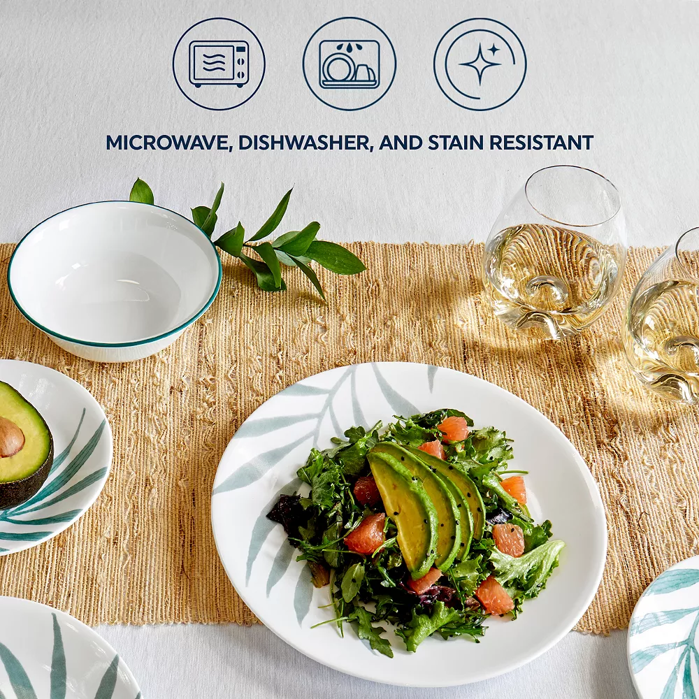 The leafy palm graphics on this beautiful Corelle Solar Print dinnerware set bring your table setting to life and make every meal feel like a vacation.