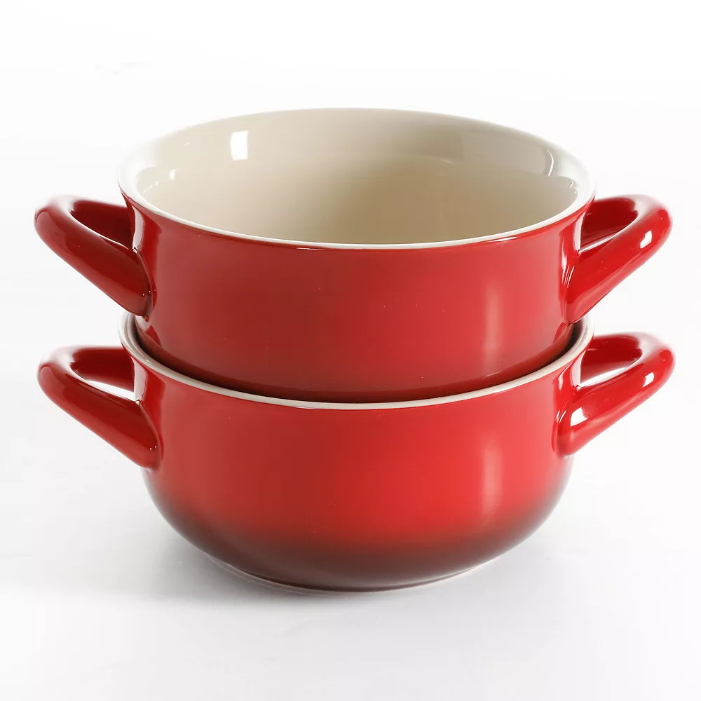 - Beautiful pair of 30-ounce soup bowls in red gradient make the perfect backdrop to your favorite meals
