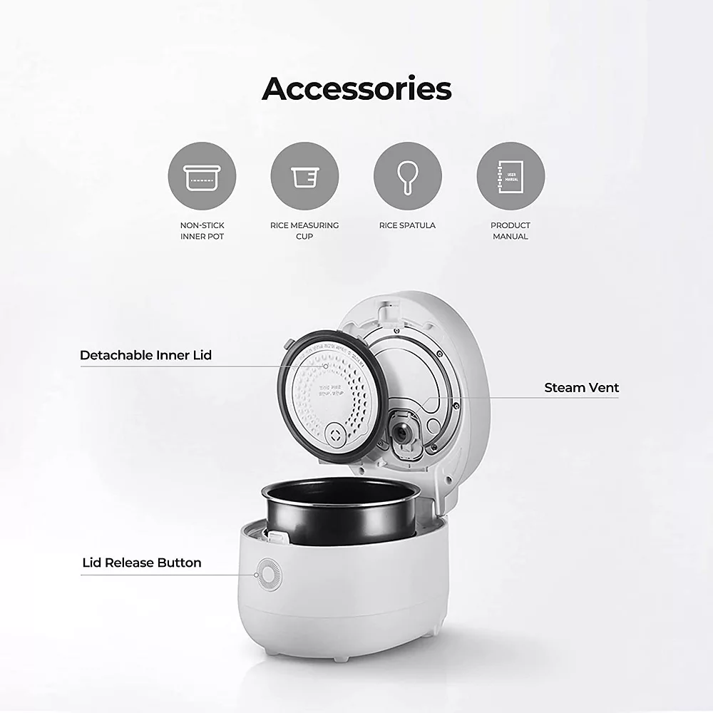 - Features a nonstick inner pot with superior durability, an auto-clean function that steam cleans the interior of your cooker, and a removable excess water drainage tray