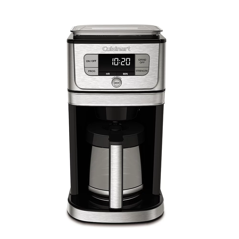The Grind & Brew coffee maker by Cuisinart features an innovative DirectFlow grind assembly that seamlessly moves coffee through the professional-style burr grinder right into the brew basket.