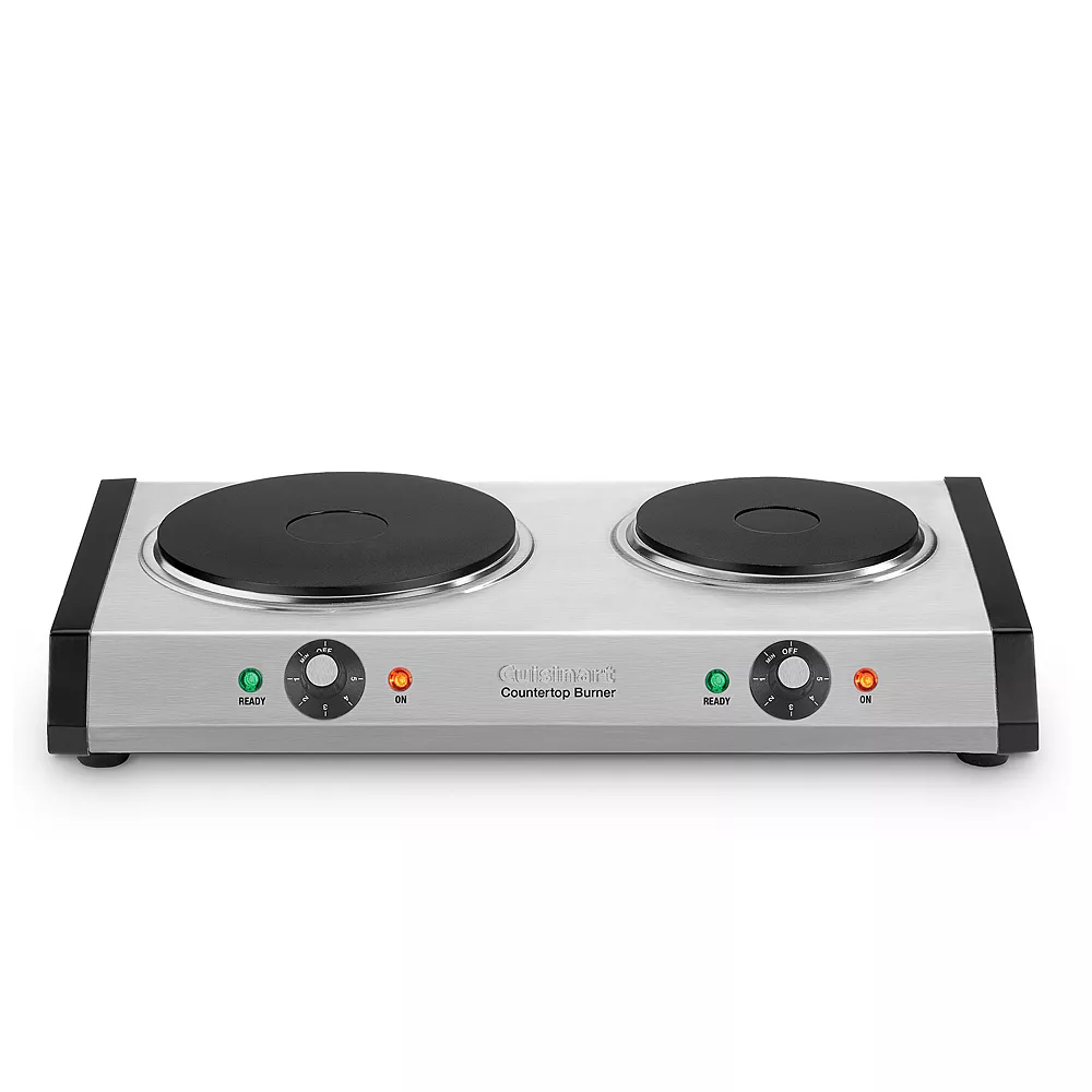 Practical and easy to use, this Cuisinart double burner heats food in no time.