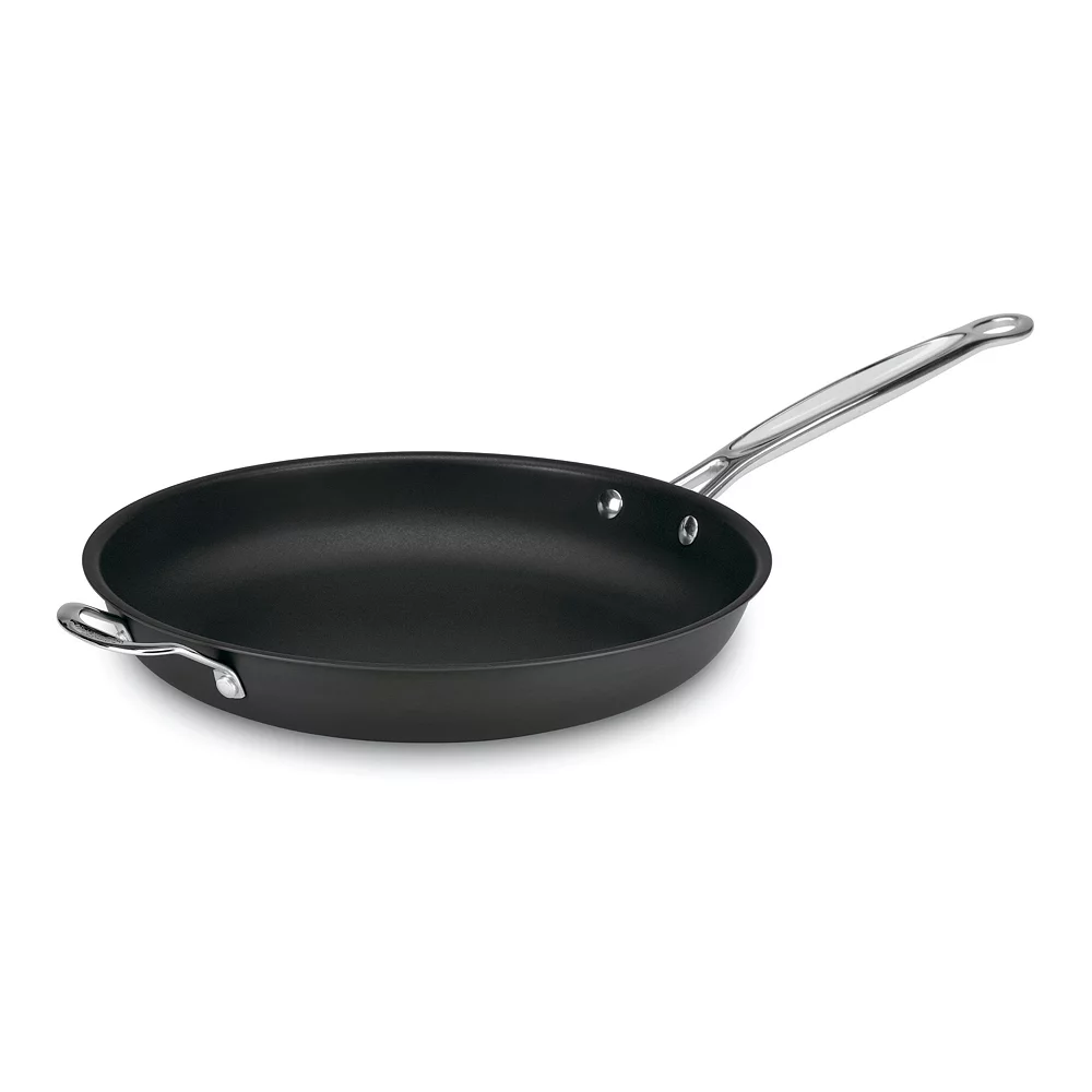 Cuisinart Chef’s Classic nonstick hard anodized skillet has sloped sides and a wide, flat bottom for frying, sautéing or browning. An extremely durable exterior with a smooth, hard anodized finish creates a look of professional elegance to complement any kitchen.