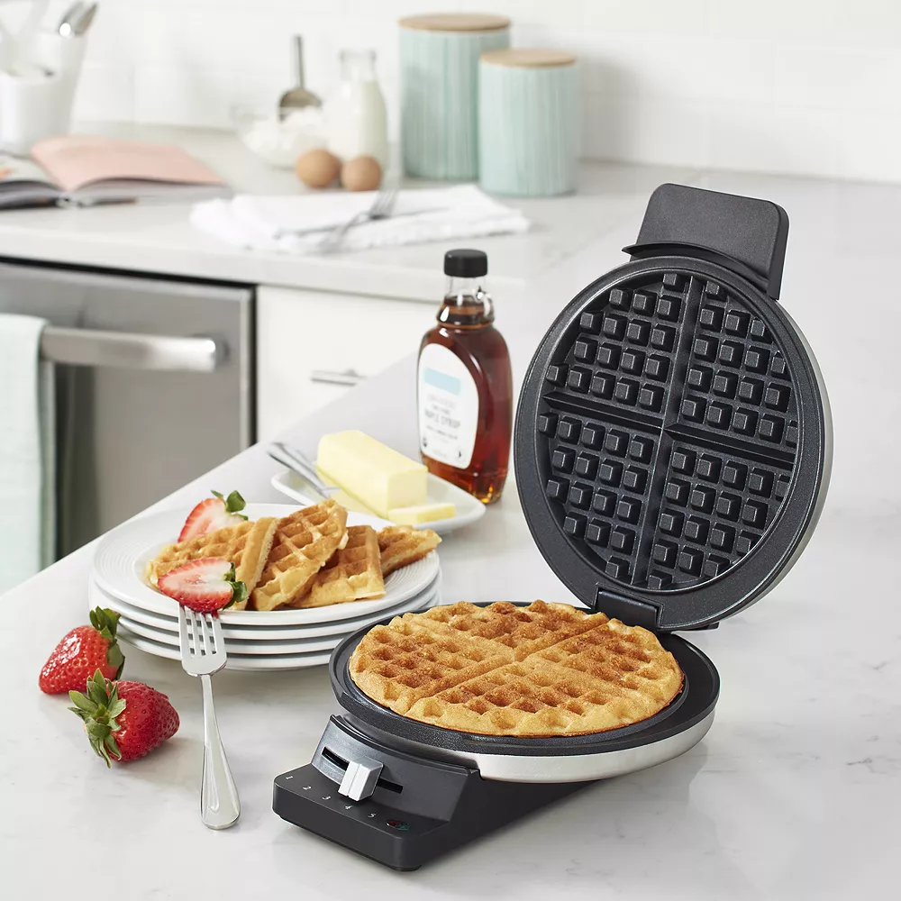 - Bakes 1 traditional-style waffle