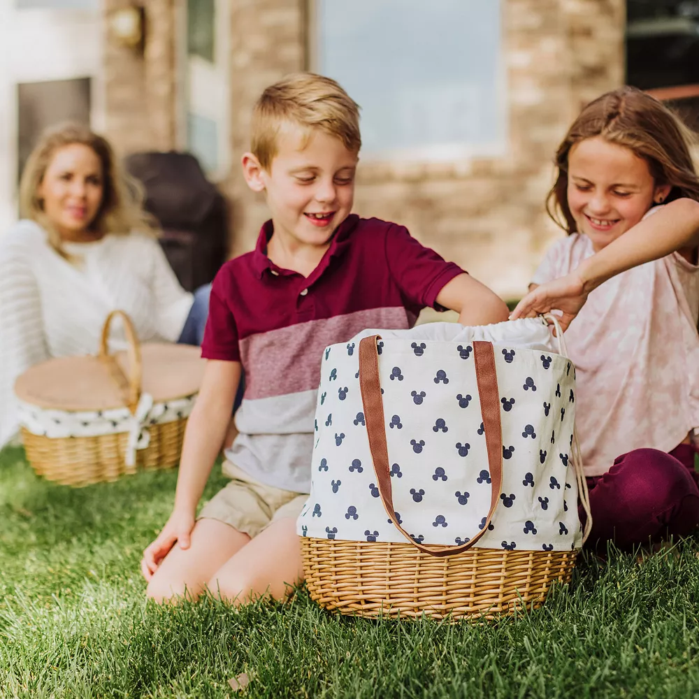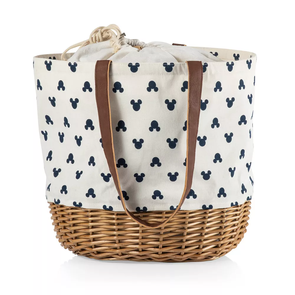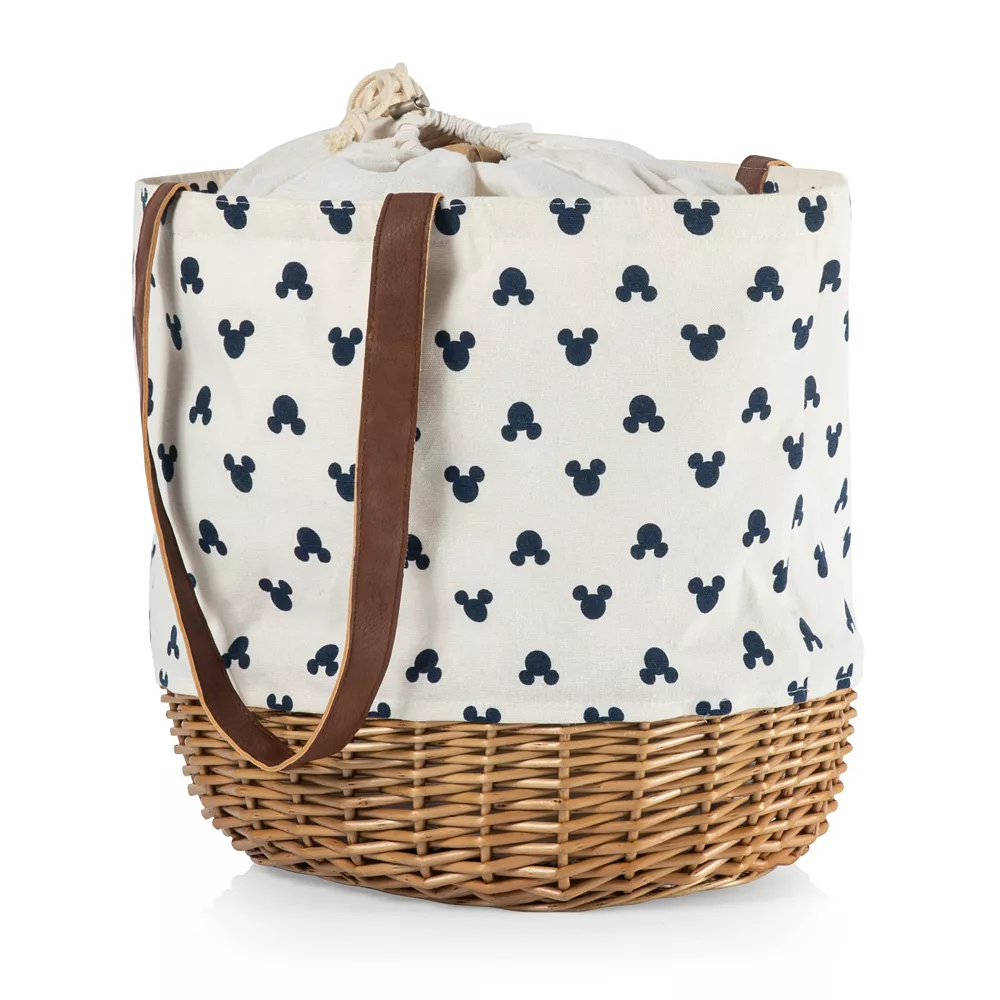 The Mickey Silhouette Coronado Canvas and Willow Basket Tote by Picnic Time is a fantastic beach tote or picnic basket bag for your next weekend beach trip, your favorite Farmer’s Market, a Sunday trip to the grocery or a Disneyland jaunt.