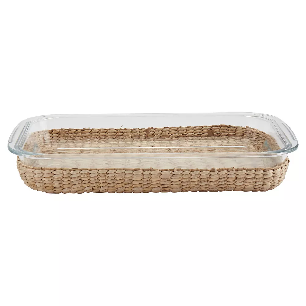 Bring Dolly`s iconic style to your kitchen with this charming rectangular glass baker and wicker basket base.