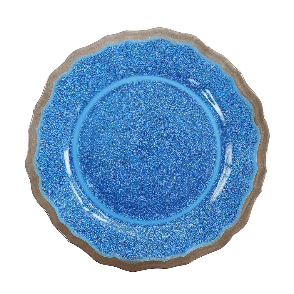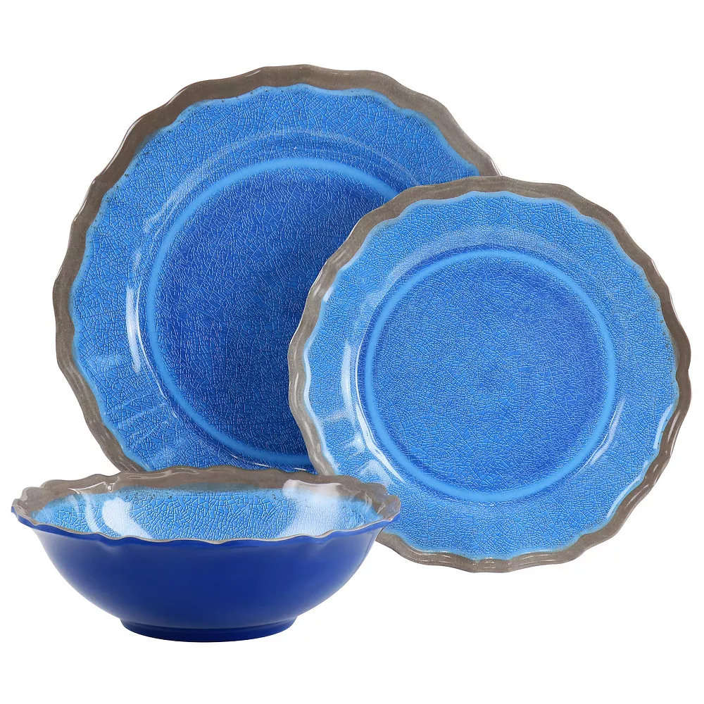 Beautify the dining table for your big night with the Roma 12 Piece Melamine Dinnerware Set by Elama. This set comes with service for four, including four bowls, four dessert plates, and four dinner plates. Constructed with lightweight durable melamine, this set is perfect for use indoor and outdoor and will stand the test of time. Designed with a crackle painted glossy coating and a scalloped edge, these dishes will add some color and interest to any table. Top rack dishwasher safe for easy cleaning.
