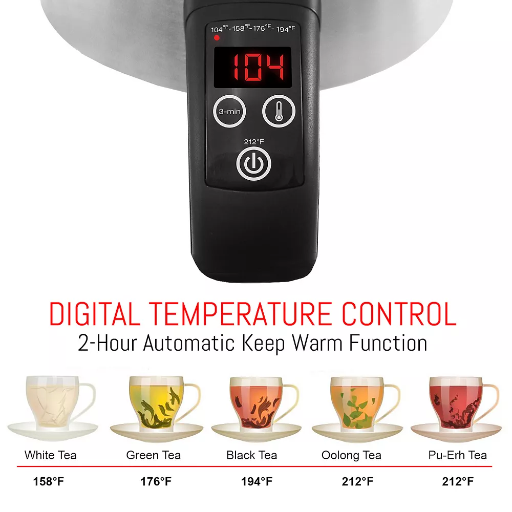 - Smart Keep Warm function maintains the perfect tea temp for two hours