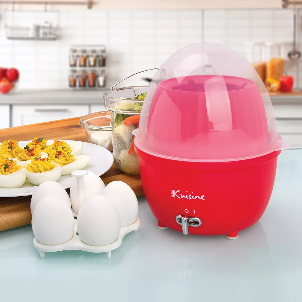 Make healthy lunches, appetizers and more with the Euro Cuisine Electric Egg Cooker and Steamer, perfect for making hard, medium, or soft-boiled eggs and steaming smaller portions of your favorite foods and vegetables.
