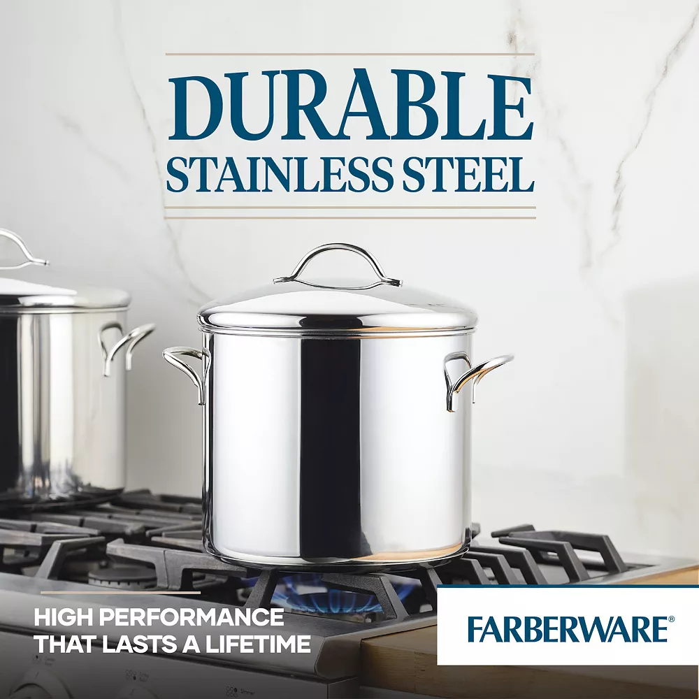 The large capacity of this Farberware Classic stockpot gives you plenty of room for cooking up family-style meals.