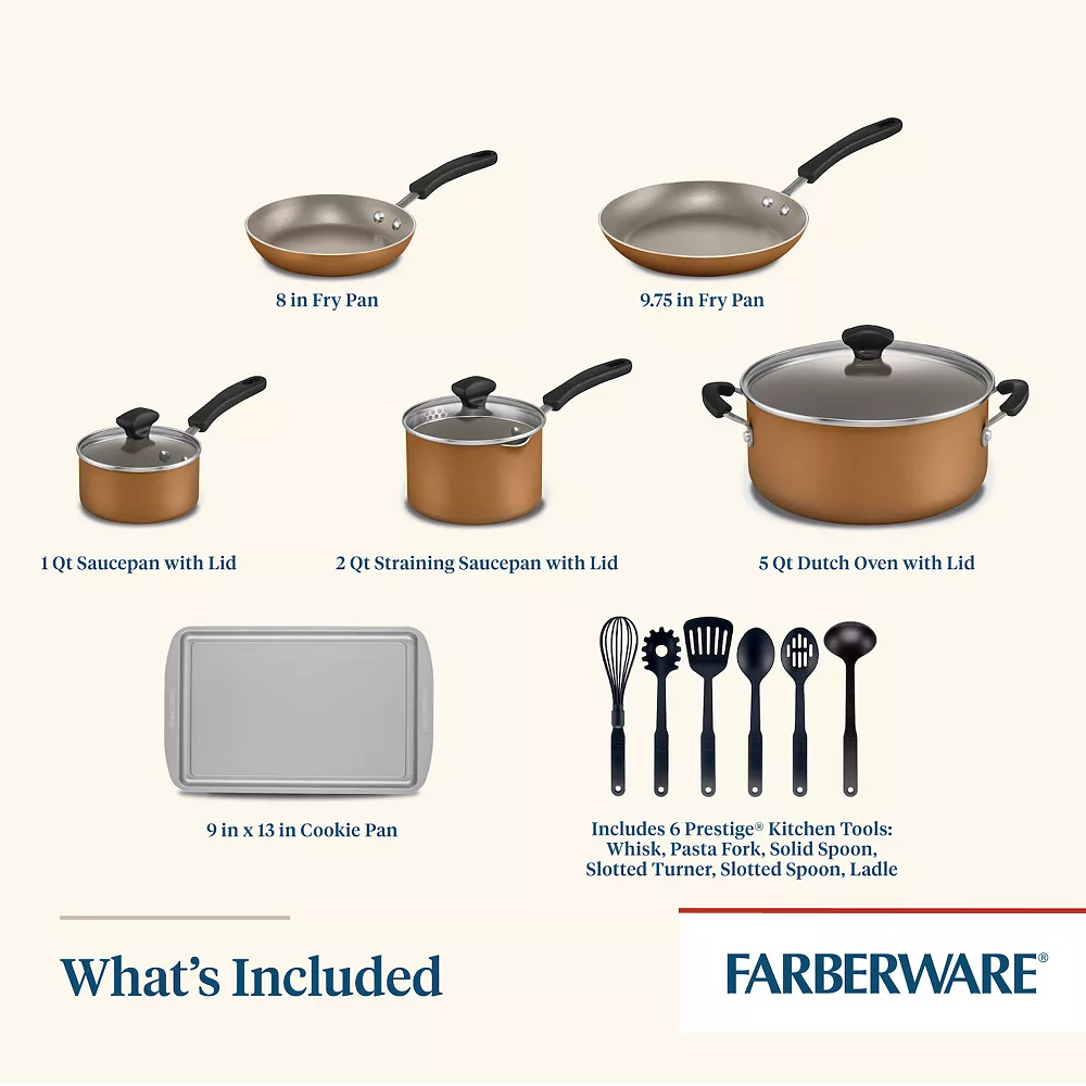 The Farberware Cookstart 15-pc. DiamondMax nonstick cookware set is the perfect pick for any budding chef’s new kitchen.