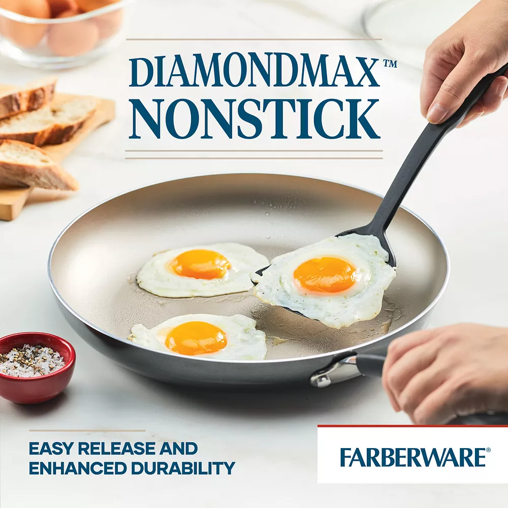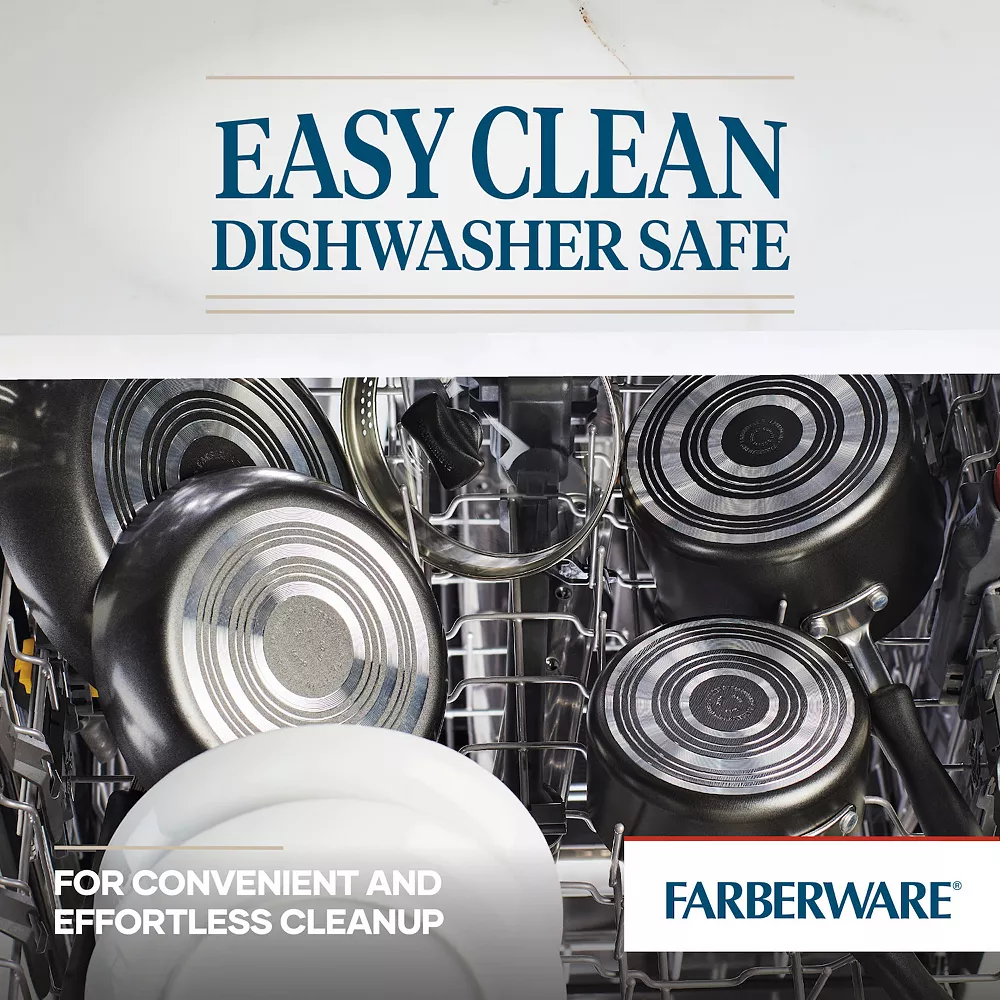 Home chefs who log lots of hours in the kitchen will love this Farberware Cookstart DiamondMax cookware. Its heavy-duty aluminum construction ensures excellent heat distribution and durability that lasts recipe after recipe.