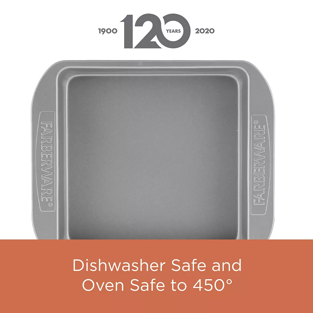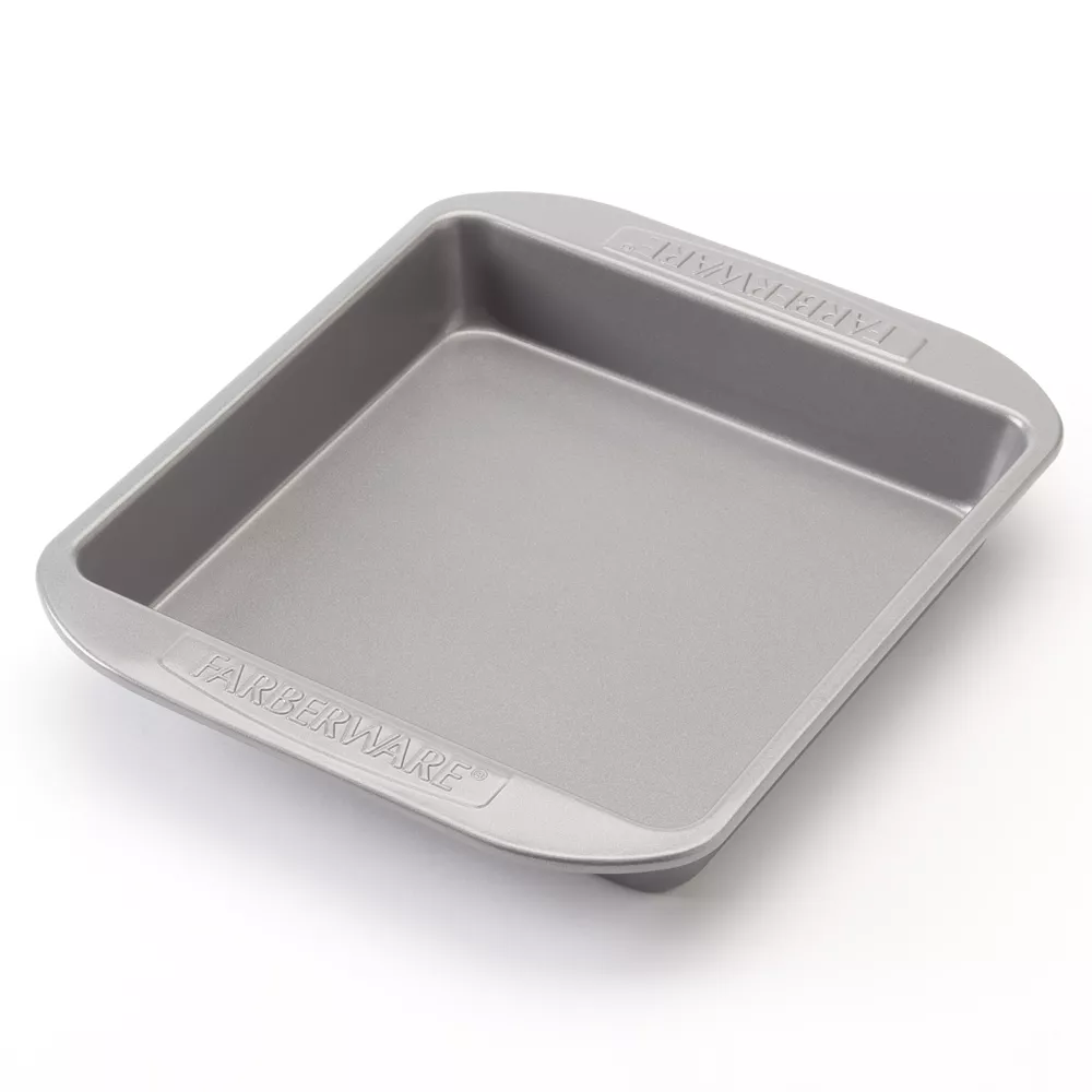 This Farberware square baking pan takes the cake. Its heavy-weight aluminum construction ensures even heat distribution, so you’ll have perfectly-browned desserts with every use. Every baker’s kitchen should be equipped with this Farberware cake pan.