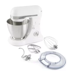 This kitchen countertop stand mixer is a multi-function addition to any home. Use the included balloon whisk to froth up egg whites for meringues, cakes batters, and silky sauces. A beater paddle is also included, ideal for extra-chunky chocolate chip cookie dough, buttermilk pancake batter on Saturday morning, or savory crepes. A steel dough hook lets you make dough for pasta, sourdough, pizza crust, and more without giving your forearms a kneading workout. The powerful motor has a 12-speed design with a knob on the base for easy adjustment.