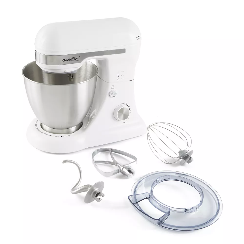 Start baking with the confidence of a seasoned pastry chef with the Geek Chef Stainless Steel 4.8 Qt Bowl 12 Speed Baking Food Stand Mixer.