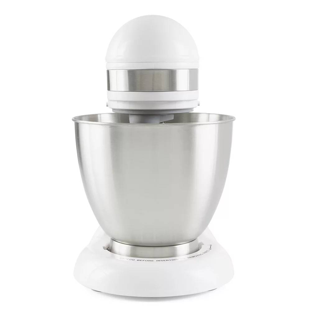 - Baking stand mixer with 4.8-quart, stainless steel bowl, and 3 attachments (beater, dough hook, balloon whisk)