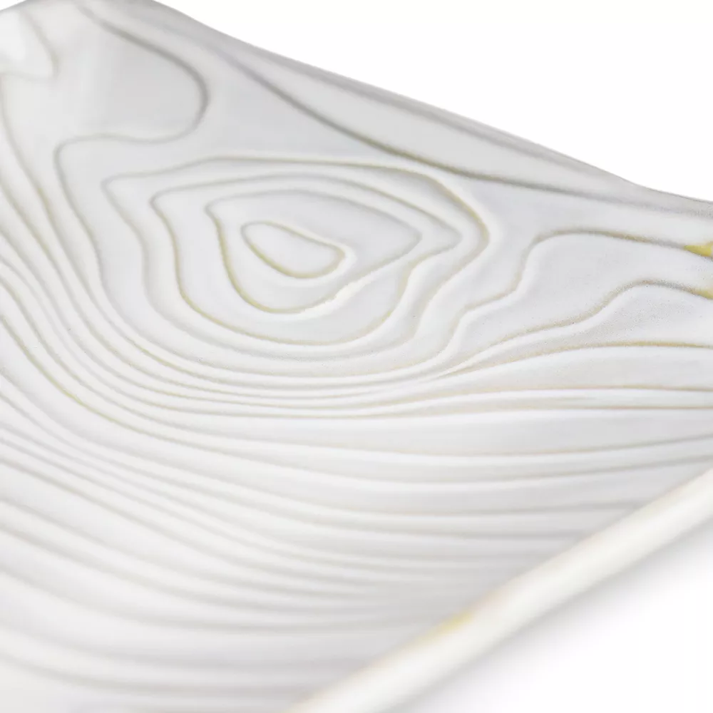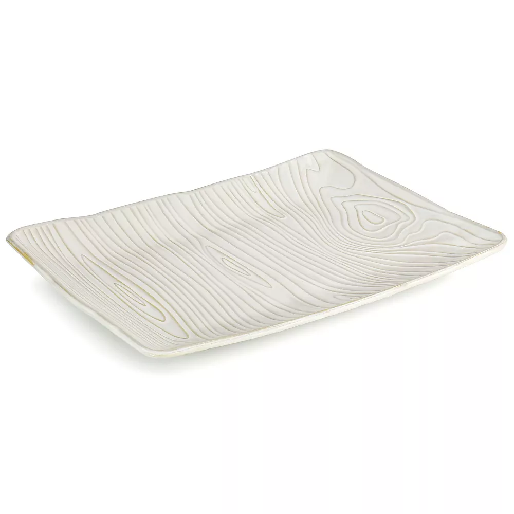 The Gibson Home 14in Stoneware Wood Pattern Serving Plate will be your go to statement piece at any dinner party. Designed with wood bark like embossed patterns with an off white reactive glaze finish, this piece will make your appetizers look even tastier! The stoneware construction is durably made to last and is completely dishwasher safe for easy and hassle free clean up. Make your table stand out with this beautifully unique wood grain serving plate. Item Dimensions: 14.00 x 10.00 x 1.00 Item Weight: 3.15lbs