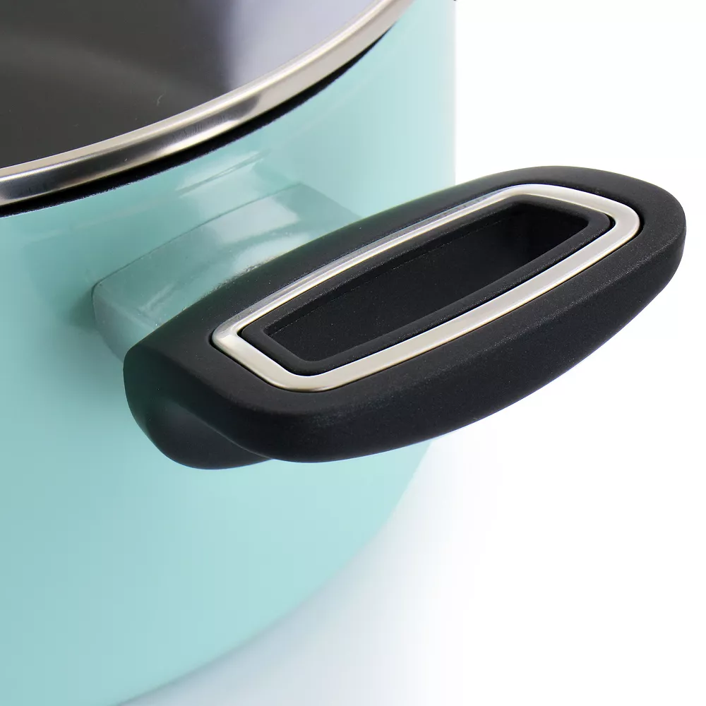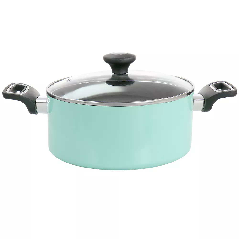 This 5 quart dutch oven by Gibson Home is the perfect combination of style, quality, and convenience. The durable forged aluminum body is perfect for braising, stewing, and boiling. Featuring soft touch handles that stay cool for easy transport, and a nonstick interior for low oil cooking and easy cleanup. Comes with a tempered glass lid that allows safe monitoring of your cooking progress. And to top it off, this dutch oven is compatible with all stove tops including induction!