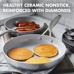 The GreenPan Chatham frying pan features a three-layer design for even heating and incredible results. Made for daily life, this pan’s metal utensil safe diamond-enhanced ceramic nonstick delivers ultra-fast performance and effortless nonstick release.