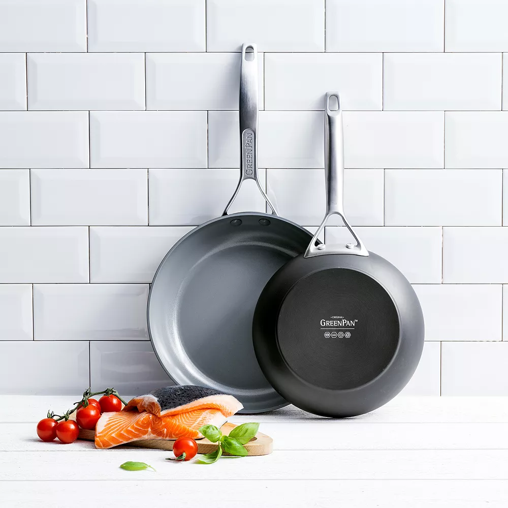 Master mealtime with this handy GreenPan Paris Pro ceramic nonstick frypan set.