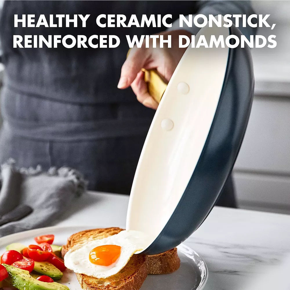 - Metal utensil safe, this collection’s diamond-reinforced coating is incredibly durable