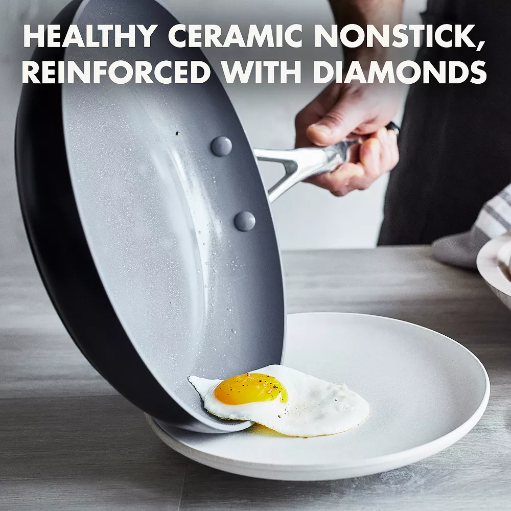 Enjoy hassle-free meals with the cooking convenience of this GreenPan Valencia Pro ceramic nonstick frypan set.