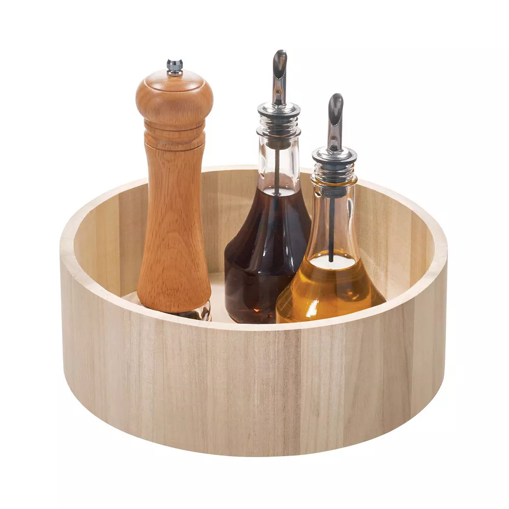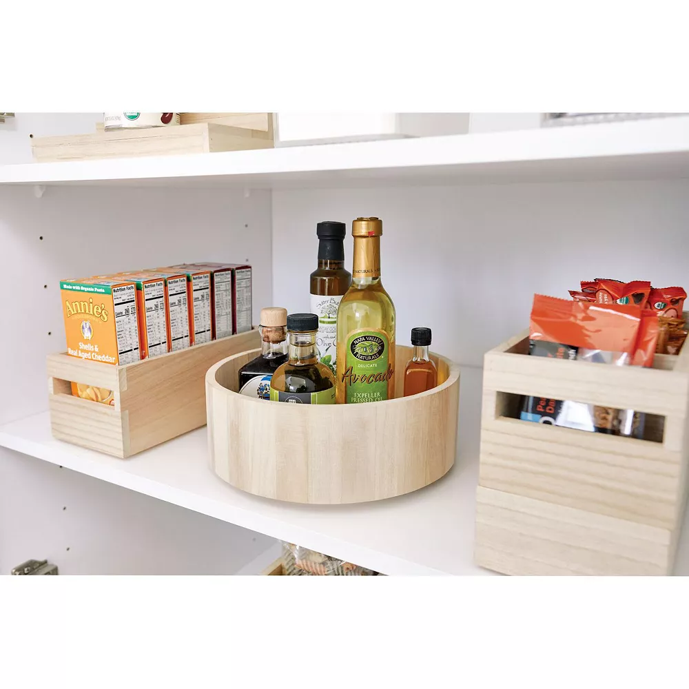 Sustainability meets storage with the iDesign EcoWood Tall Turntable Organizer. This eco-friendly turntable provides convenient rotating storage for kitchen and pantry items in cabinets or on shelves.
