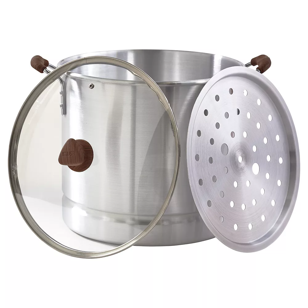 The IMUSA 32-qt. Tamale/Seafood Steamer is ideal for keeping tamales, seafood, veggies and other culinary creations out of hot water! Just fill the bottom of the pot with water, broth or wine and use the included tray to rest the foods to be steamed.