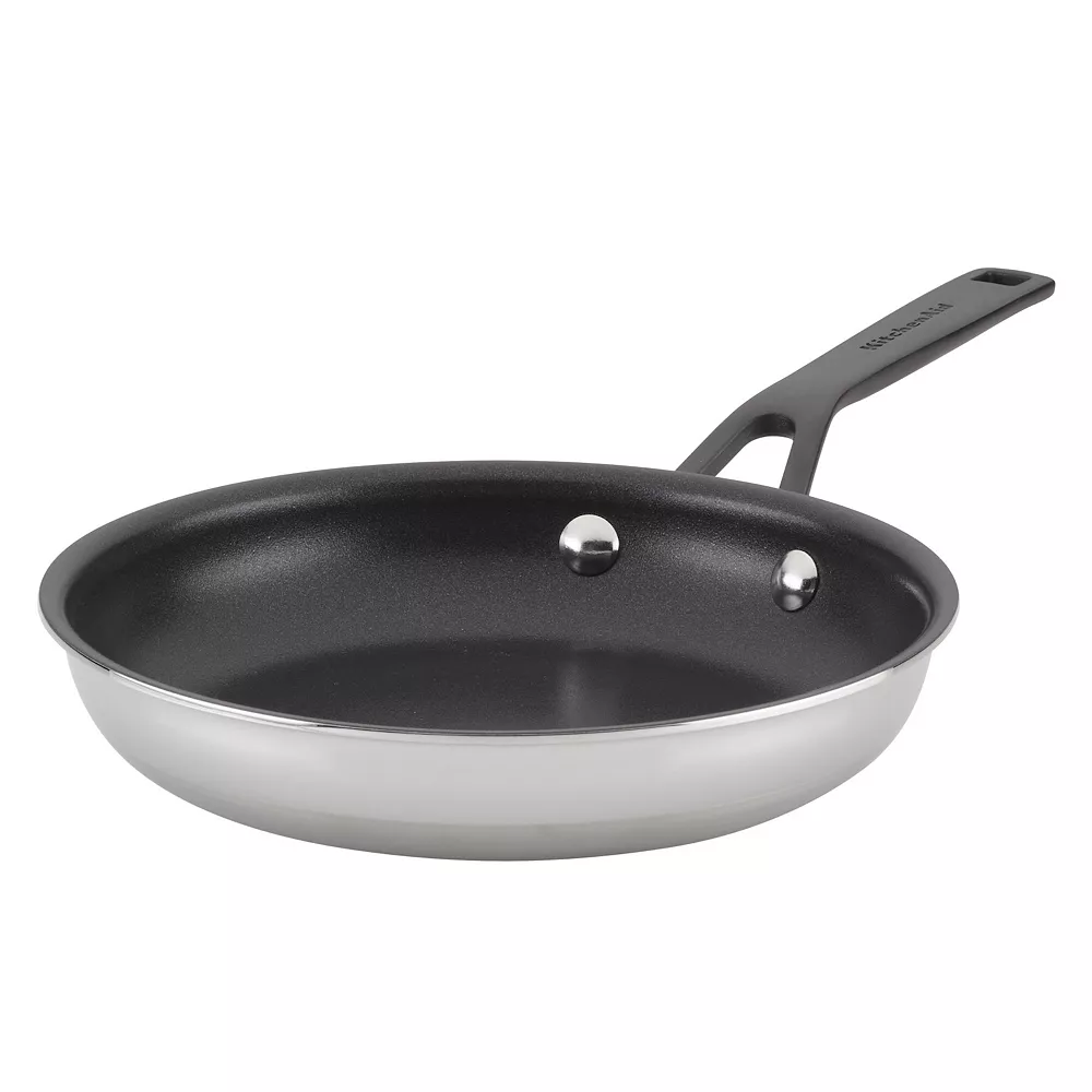 - KitchenAid stainless steel pan is finished with triple layer nonstick to stand up to daily wear and tear