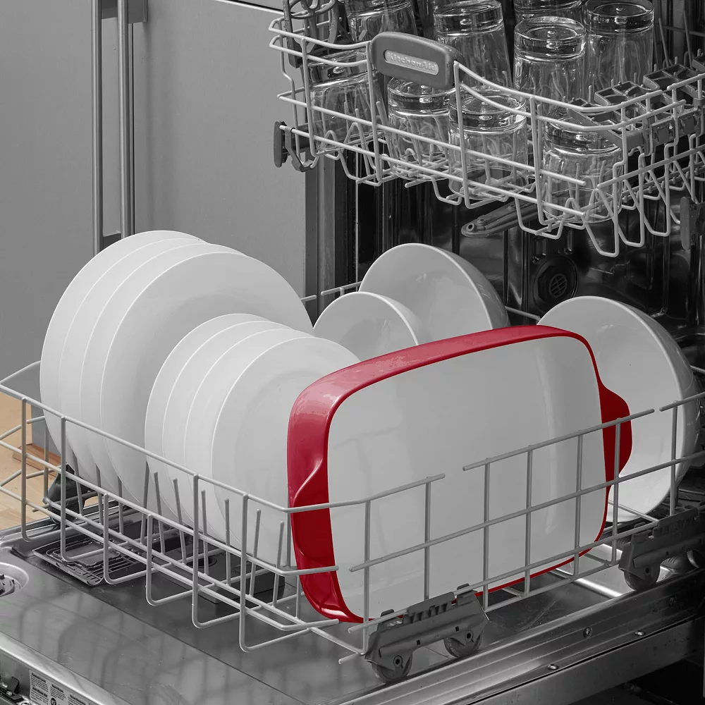 This KitchenAid Rectangular Baker is a kitchen essential for making casseroles for family meals. Made from highly durable stoneware, the vitrified construction offers chip and stain resistance. Expect professional results when using this nonporous bakeware, which provides even heat distribution and retention.
