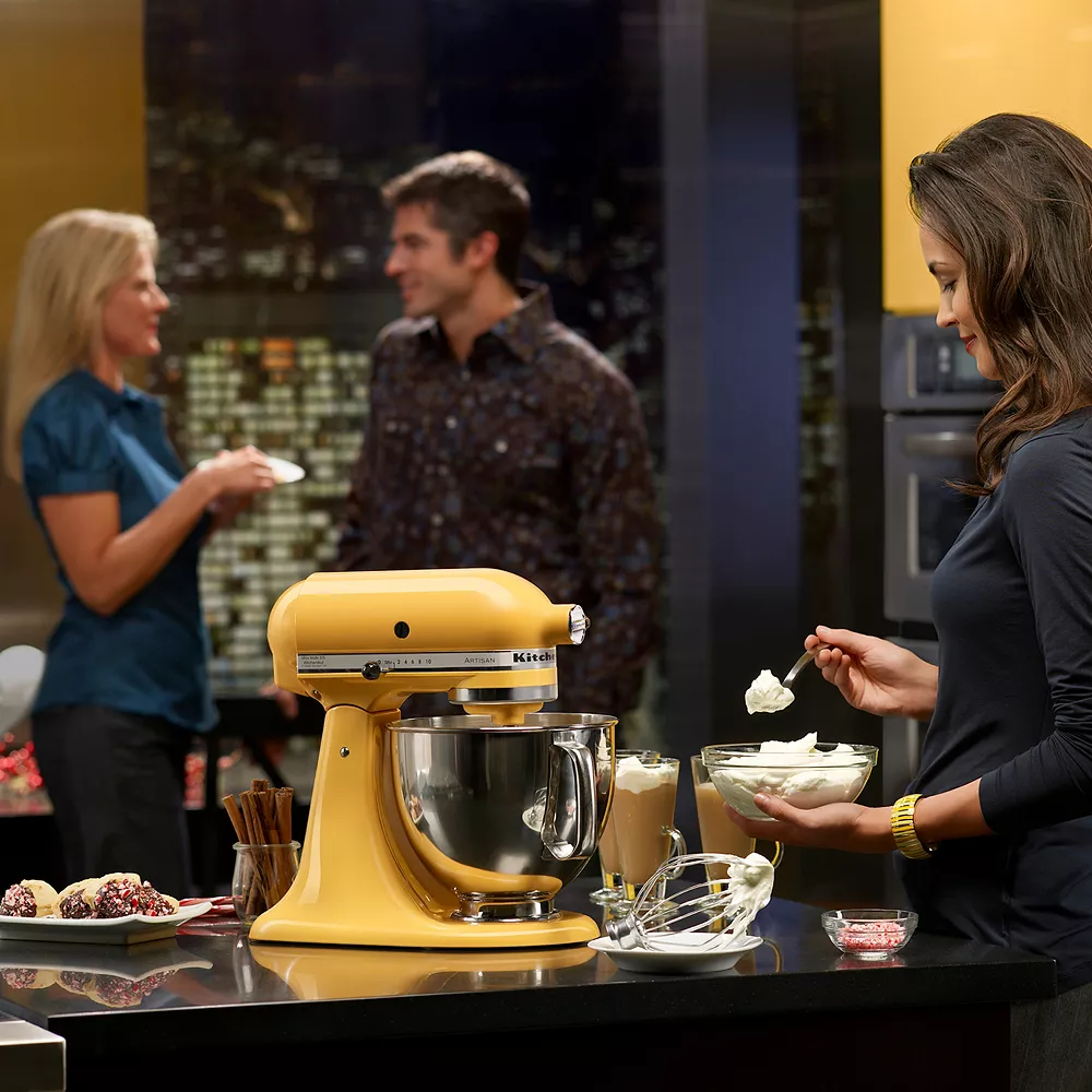 Whether you need 9 dozen of your signature chocolate chips cookies or shredded chicken for Taco Tuesday with friends and family, the KitchenAid Artisan Series 5-Quart Tilt-Head Stand Mixer has the capacity for every occasion. This durable tilt-head stand mixer was built to last, and features 10 speeds to gently knead, thoroughly mix and whip ingredients for a wide variety of recipes and comes in a variety of colors to perfectly match your kitchen design or personality.