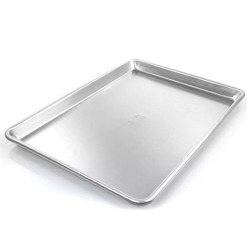 Bake all your favorite dishes with the Martha Stewart Baking Sheet. Whether its cookies or roasted veggies, make this the perfect addition to your kitchen and treat all your friends and family. Made of pure aluminum that won’t rust and heats evenly for consistent baking results. The reinforced rolled rim prevents warping at extreme temperatures. Heat resistance up to 400 degrees Fahrenheit. This Martha Stewart baking sheet is just one of the amazing pieces you can get for your home kitchen. Complete the entire collection to truly feel right at home.