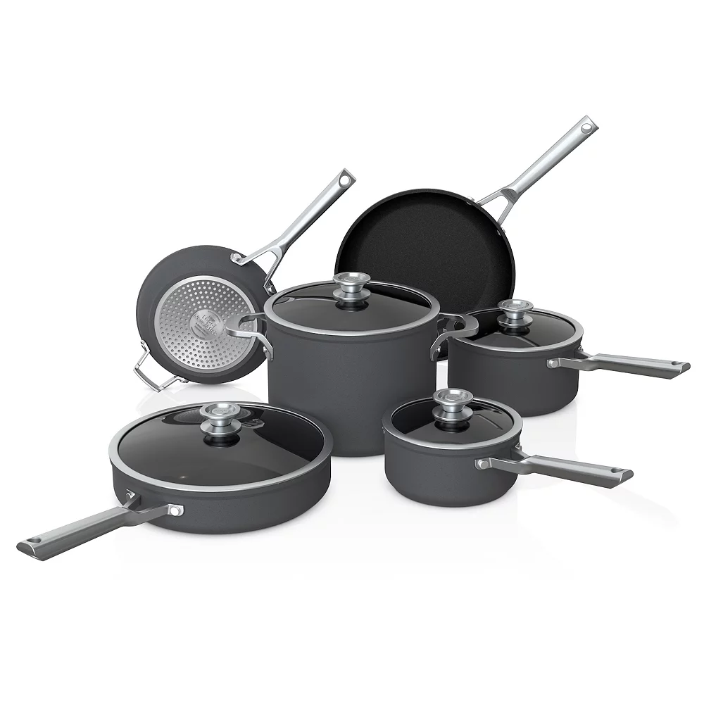 - This premium cookware has an extremely durable shot-blasted, hard-anodized exterior that resists scratches like stainless steel.