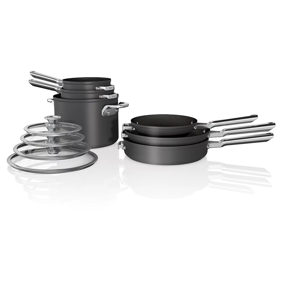 Ninja Foodi Neverstick Premium Anti-Scratch Nest System is the nesting cookware that won’t stick, chip, or flake. Its unique nesting design saves space and protects the cooking surfaces of your pots and pans during storage.