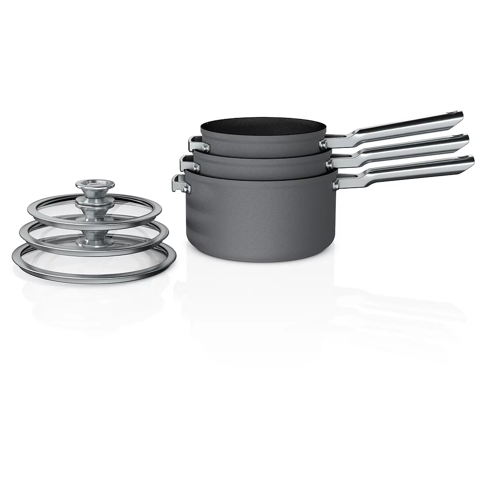 - 1.5-qt. saucepan with glass lid, 2.5-qt. saucepan with glass lid, 3.5-qt. saucepan with glass lid
