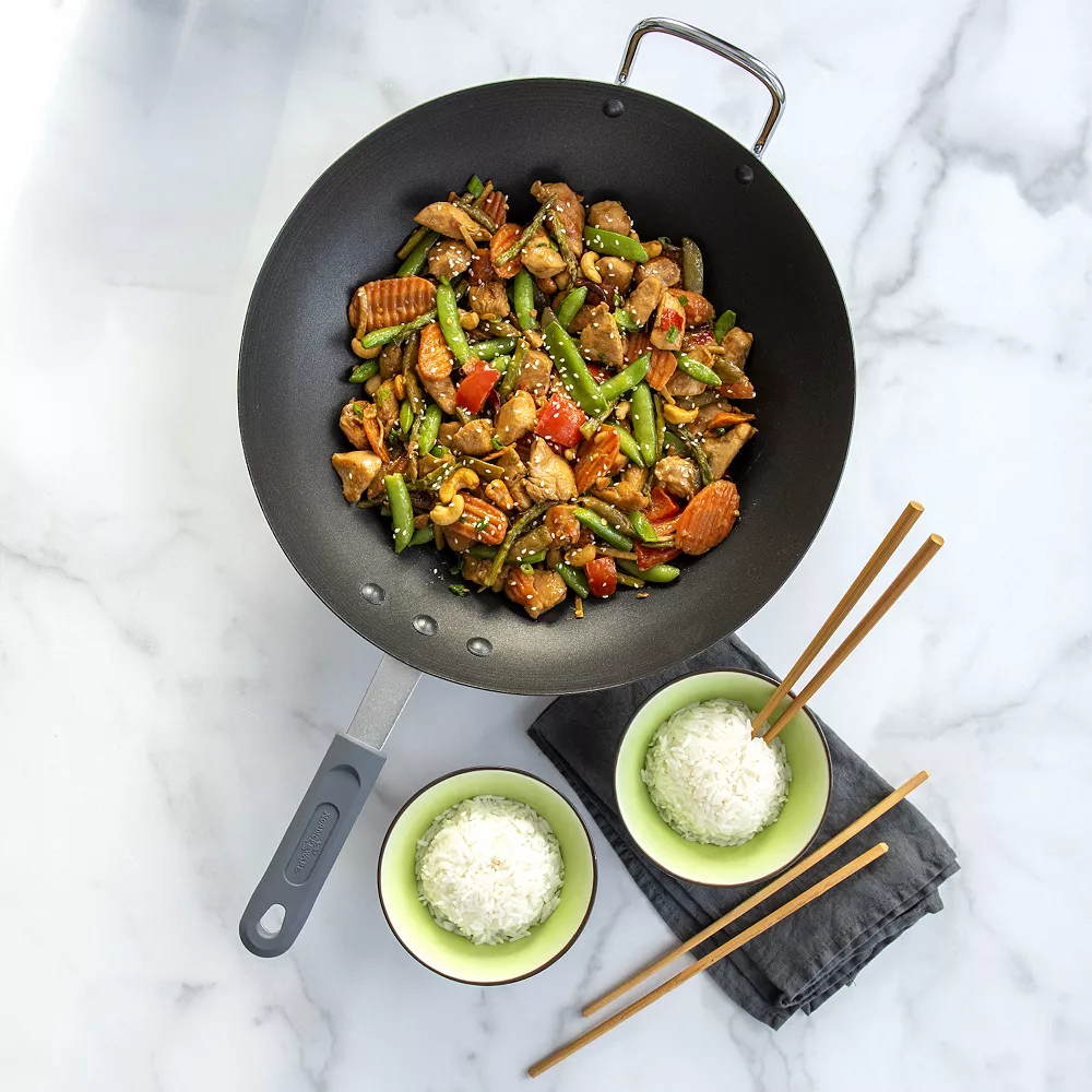 Update your cookware collection with this nonstick wok from Nordic Ware. It’s classic full size, flat-bottomed design if perfect for stir-frying and sauteing.
