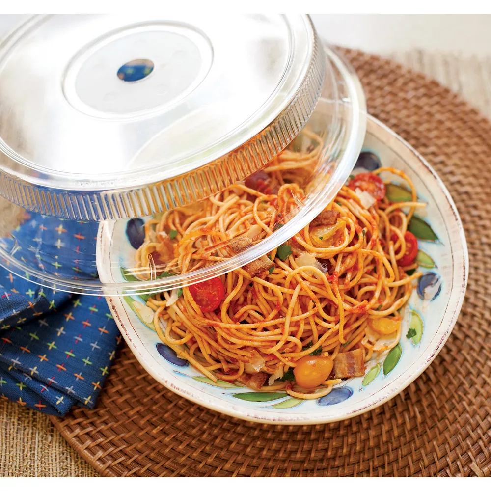 This Nordic Ware microwave cover fits dinner plates up to 11″ in diameter as well as fits the Nordic Ware 2-Sided Bacon and Meat Grill. Its clear, see-though plastic design lets you view food while it is heating.