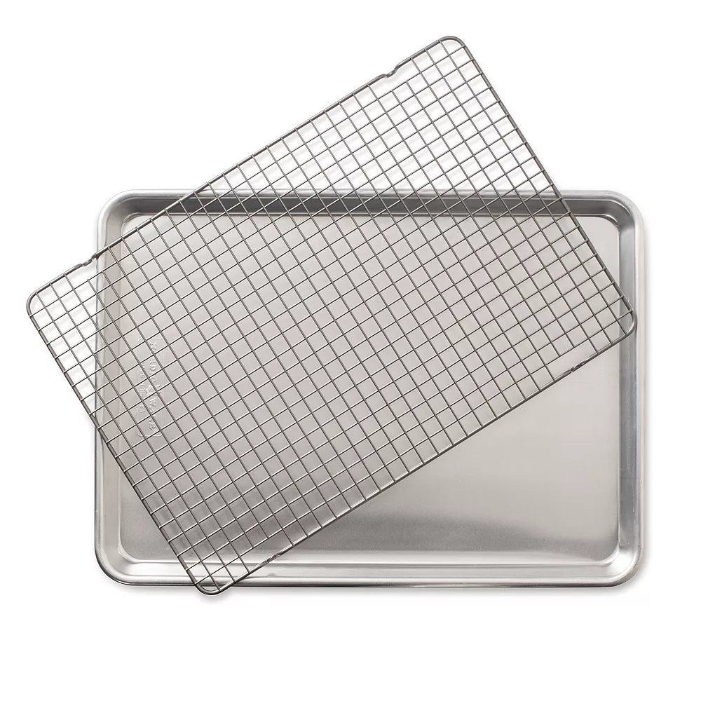 This Nordic Ware Naturals Half Sheet pan includes a custom nesting nonstick grid. Use them together for crisping in the oven or separate the two so you have a baking pan and cooling grid.