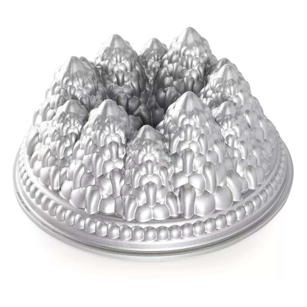 Cakes baked in this Nordic Ware bundt pan and sprinkled with powdered sugar resemble pine trees blanketed with fresh fallen snow. Simply lovely!
